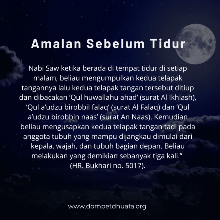 Rasulullah SAW mengajarkan berbagai amalan dzikir sebelum tidur yang sangat berharga. Di antara dzikir yang dianjurkan, terdapat istilah “Al-Mu’awwidhat” yang terdiri dari dua surah: Al-Falaq dan An-Nas. Membaca dua surah ini sebelum tidur tidak hanya memberikan perlindungan dari segala keburukan, tetapi juga menanamkan rasa aman dalam hati. Dalam perjalanan spiritual kita, menjelang tidur seharusnya menjadi waktu refleksi dan rasa syukur atas segala karunia yang telah diberikan kepada kita.